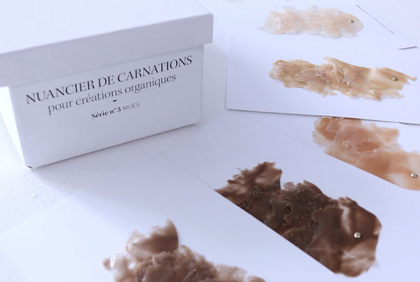 /Recherches de textures autour des multiples aspects de la peau. Différentes carnations et aspérités ont donné lieu à un nuancier.